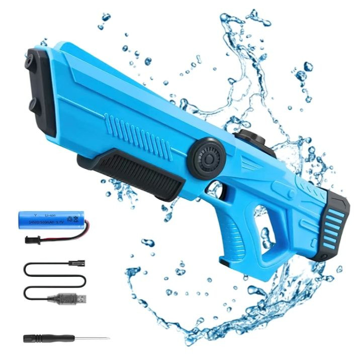 Szórakoztató automata akkumulátoros vízipisztoly, amely tökéletes választás nyári vízicsatákhoz. A modern kialakítású vízifegyver automatikus vízfelszívással működik, így gyorsan újratölthető és könnyen használható.