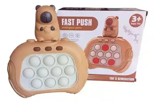 Aranyos kapibara pop it játék, amely szórakoztató és gyors reakciót igénylő ügyességi játék gyerekeknek. A játék során a világító gombokat kell minél gyorsabban lenyomni, így fejleszti a figyelmet, a reakcióidőt és a kéz-szem koordinációt.