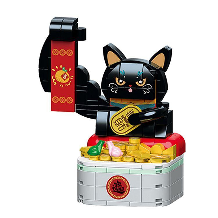 Különleges szerencse macska építőkocka készlet, amelyből egy aranyos, integető macska figura építhető. A kész modell a hagyományos japán szerencse macskát idézi, amely a jólétet és a szerencsét szimbolizálja.